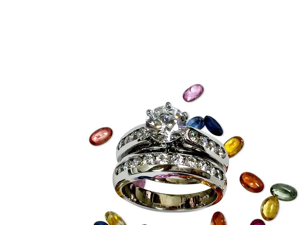 This elegant AAA High quality IGI certified 1 carat round Cubic Zirconia is set in Tiffany style 6 prong setting. It has a Cathedral style engagement ring.The ring has channel set round stones on the sides of the shank.The width is almost 4mm wide. There are 4 small round cz stones in channel. The shank has nice dome shape. The matching wedding band has 10 round stones in channel.Both rings fit flushed together.
