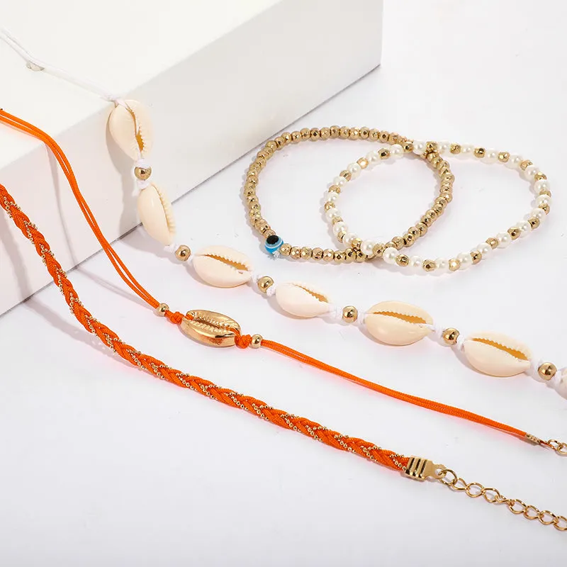 Anklets-5Pcs/set Trendy Shell Pearl Anklet for Women Turkey Eye Hand Weave Anklet Foot Bracelets Jewelry Accessories