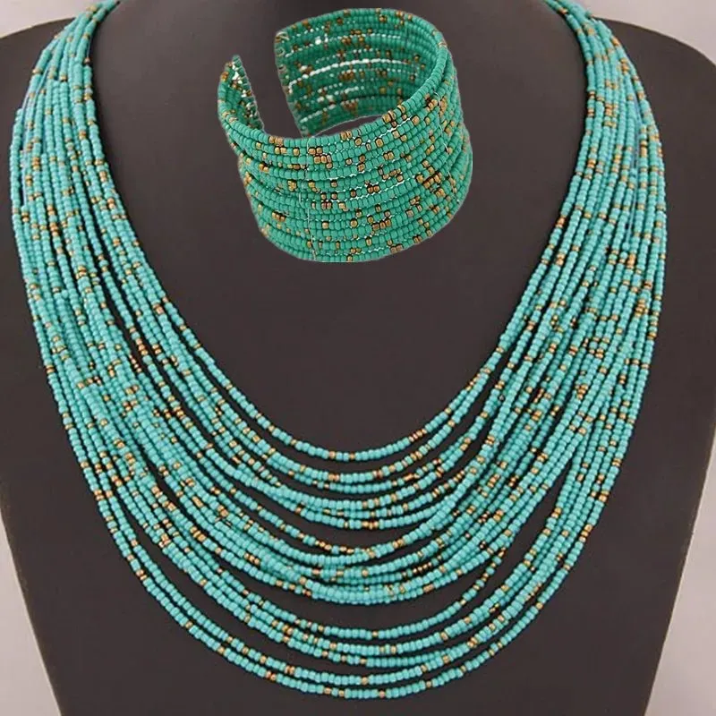 Versatile Styling Options: Whether you're dressing up for a special occasion or adding a pop of color to your everyday ensemble, these jewelry sets are incredibly versatile. The necklaces and bangles can be worn together for a coordinated look or separately to complement different outfits. Their multicolor palette means they can match a wide range of clothing styles and colors, from casual tees and jeans to more formal dresses.
