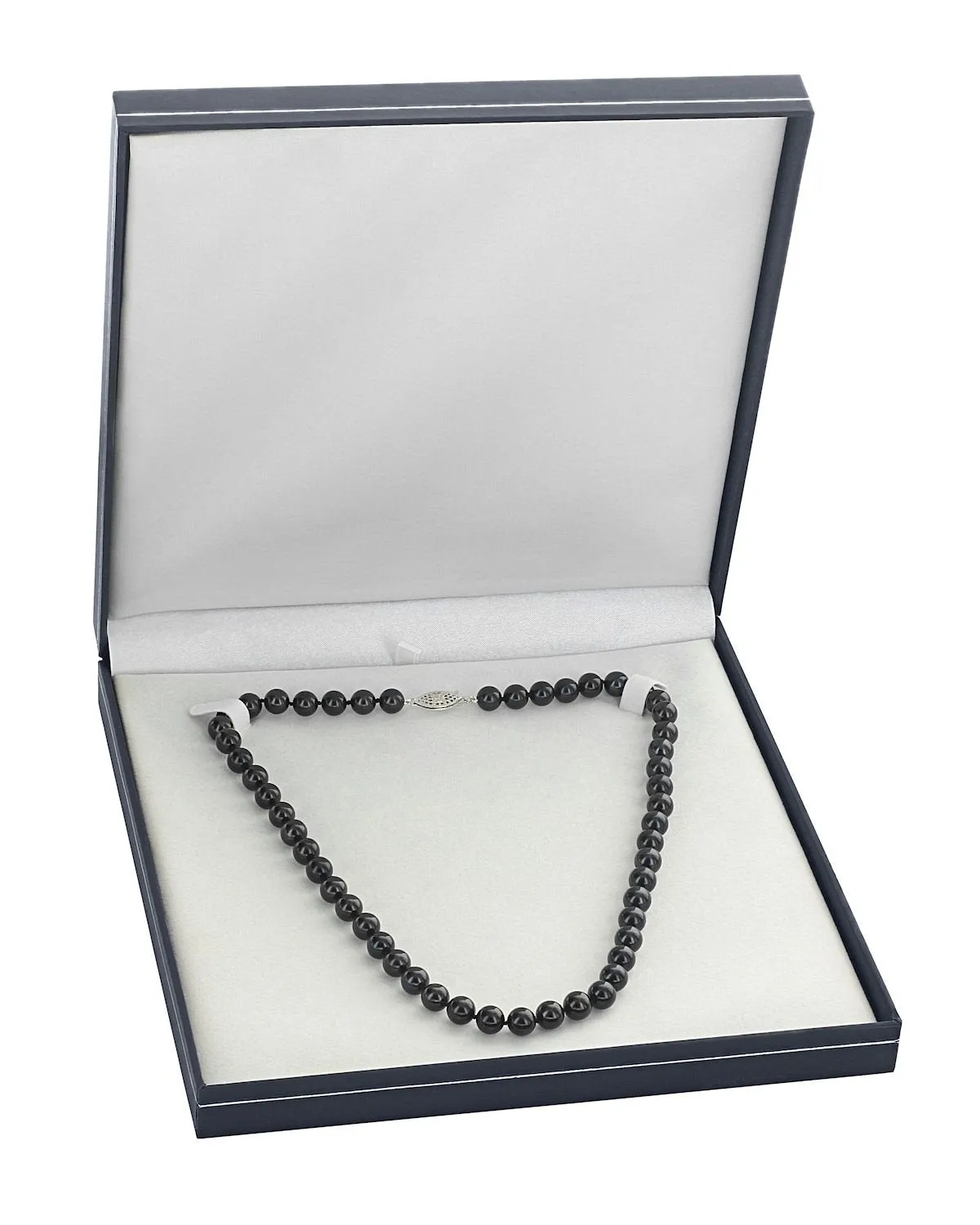 Black Japanese Akoya Pearl Necklace, 5.5-6.0mm - AA Quality