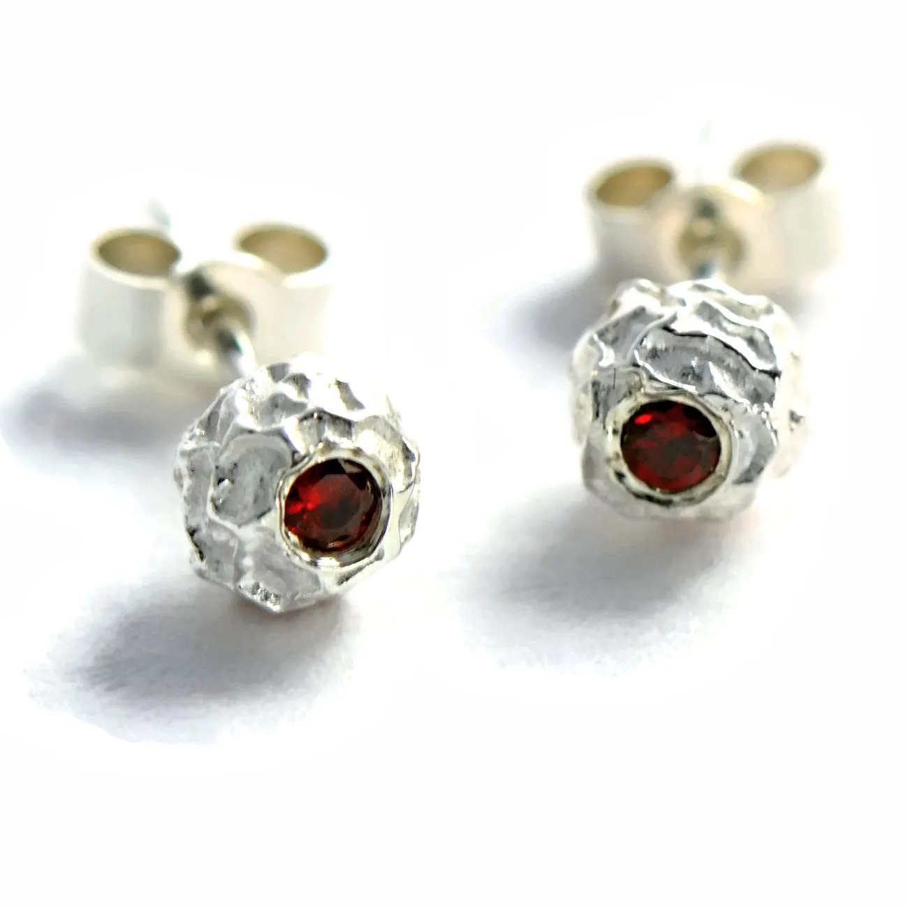 The piece is made entirely from sterling silver. Each measures 5 mm in diameter and set a 2 mm gemstone available in Citrine, Garnet, Light and dark Blue topaz, Peridot, Amethyst, or on request with the gemstone of your preference.
