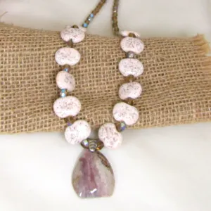 Versatile necklace keychain with removable iPhone case. Beige ribbon threaded with natural wooden beads. Attach keys, iPhone case or wear alone. Clear case with rings for easy and secure fastening. Hand stamped logo. logo.