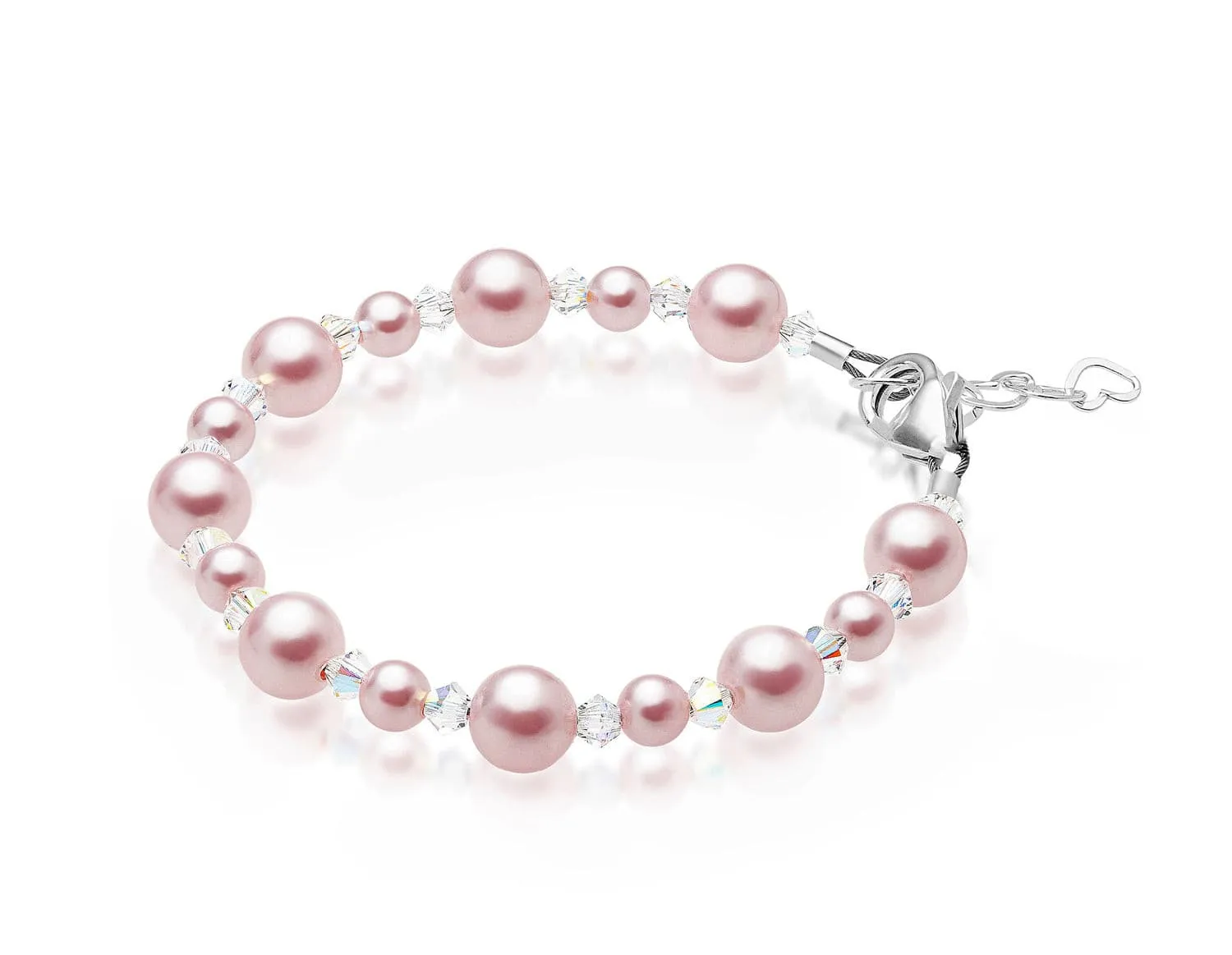 Exceptional Quality: Pink Pearl Bracelet for infant Baby Girls, Hand crafted by artisan jewelers in the USA. Our team of jewelry experts tests each Baby Bracelet for safety.