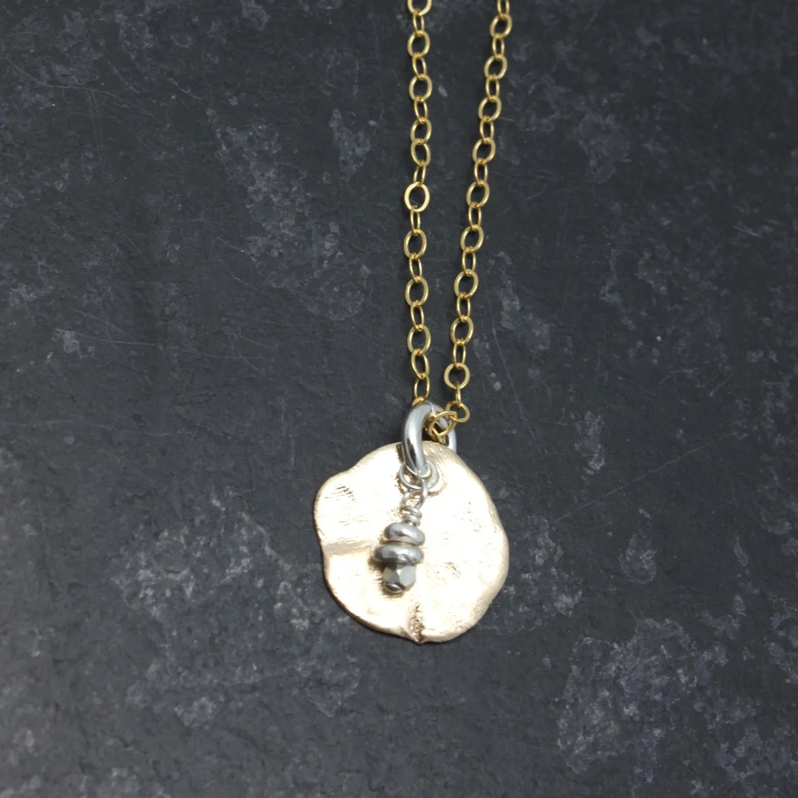 Handcrafted bronze medallion earrings suspended from sterling silver earring clasps. Each pendant has its own characteristic markings with differences between each pendant. You will receive a set of earrings similar but not exact as the ones shown.