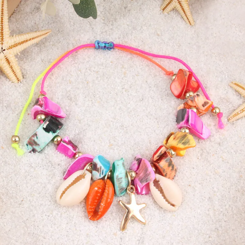 Anklets-Multicolor Bohemian Anklet Natural Shell Conch Starfish Beach Barefoot String Cord Woven For Women Foot Jewelry Sunmmer Gifts