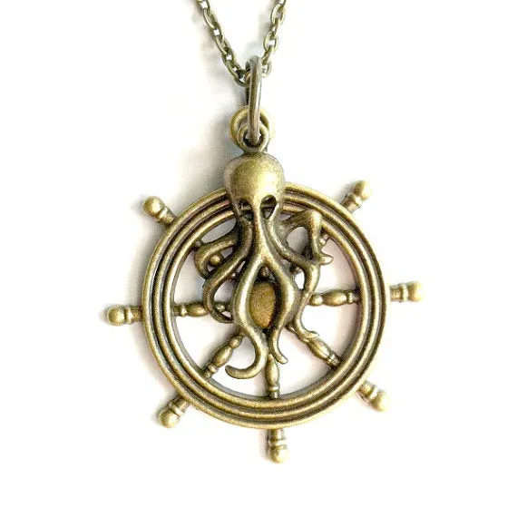 If captaining a steam powered vessel wasn’t already hard enough, this necklace combines a nautical wheel with a death dealing and ship sinking giant octopus. Many may have lost their lives to incidents like this, but you can support them with this Octopus Ship Wheel in a fashionable brass finish.