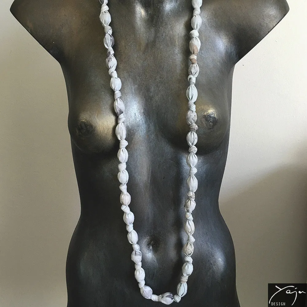 Medium size beads necklace is made of pure cotton which I hand dyed first using eucalyptus leaves collected in the Australian bush.