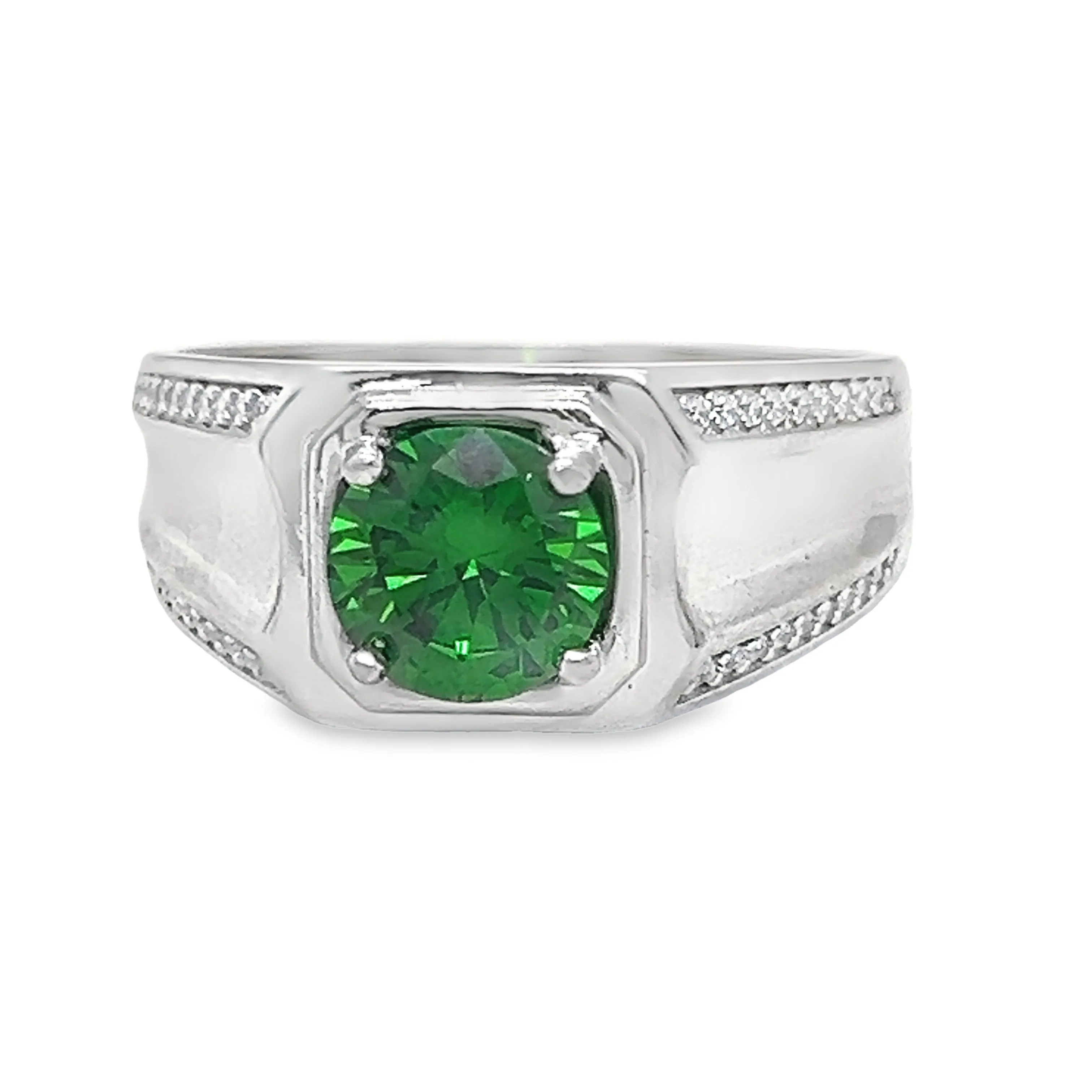 - Vibrant Green CZ Stone: The ring is adorned with a vibrant green Cubic Zirconia stone that sparkles brilliantly in the light.