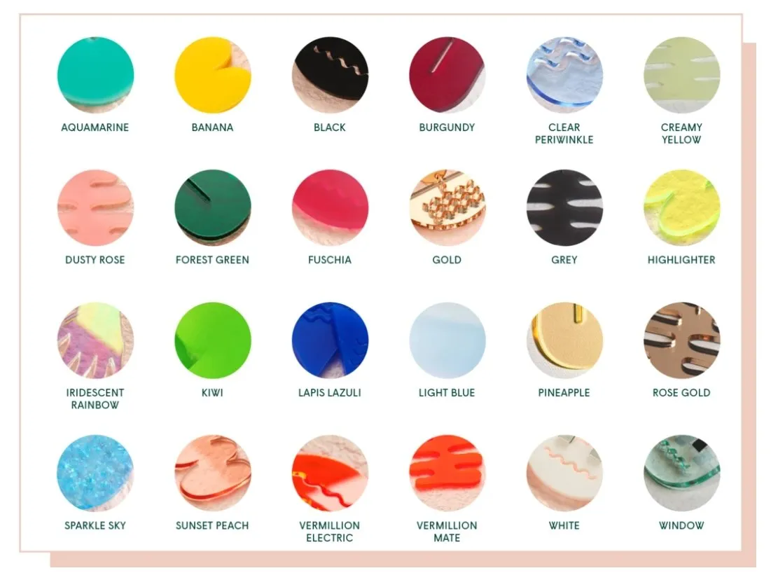 Acrylic glass hanging from a disc made of 16k gold. Studs are titanium or stainless steel, plated with 16k gold. Hypoallergenic, nickel and lead free.